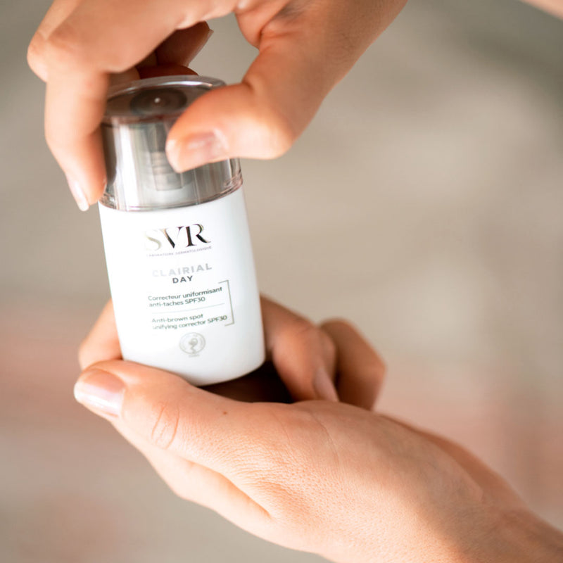 Anti-macchie: ispirato al meccanismo di sbiancamento palmo-plantare, agisce su tutte le fasi della produzione di melanina per ridurre le dimensioni e l'intensità delle macchie scure.